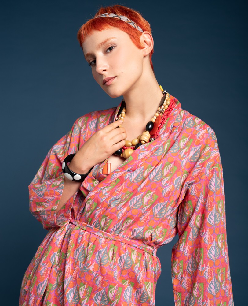 Long Kimono - Dotty bright coral